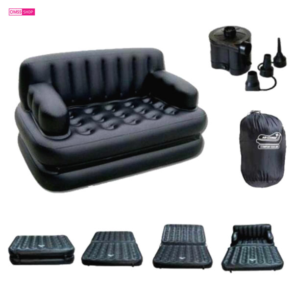 5 in 1 double air bed sofa has 76 x 60 x 25-inch dimension, can use in different functions, easily transform into kids bed / queen size bed / lounger / recliner, also used as a sofa, coil-beam construction, compact storage, excellent support for the body, convenient folding design, product including carrying bag and instruction manual, approximately 5380g weight.